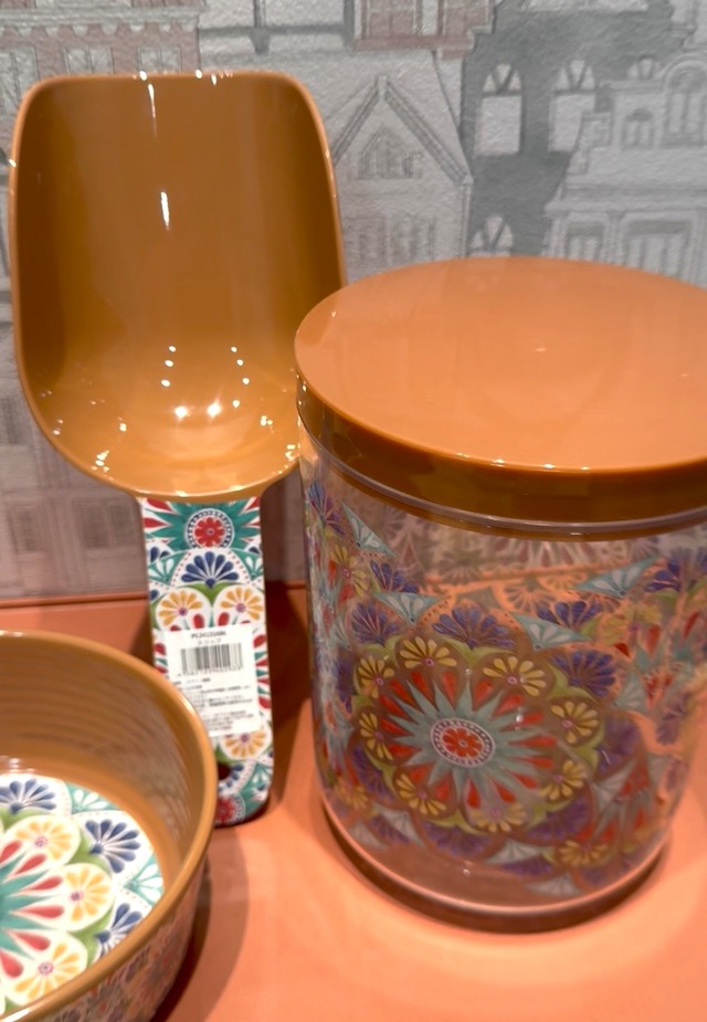ロサンゼルス生まれのユニークなデザインと、環境への優しさを融合させたテーブルウェアブランドABODE HOMEWARES(アボードホームウェア)から BPAフリーでペットに安心!ガラスのような透明感と高い耐久性を兼ね備えたMS樹脂で割れにくい! ペット用蓋付きジャー&おそろいのフードスコップのセット商品です。 ペット用蓋付きジャーは、フードやおやつを湿気や酸化から守る保存容器です。 蓋がしっかり閉まり、鮮度を保ちながら臭い漏れも防ぎます。 フードスコップは、ペットフードを簡単にすくい取り、食器に移すための便利なアイテムです。大きめの形状で、ドライフードやウェットフードを一度に多くすくうことができ、こぼさずに給餌が可能です。 【リオメダリオンシリーズ】 リオメダリオンは、鮮やかでカラフルな幾何学模様が特徴のデザインです。 中央に向かって広がる華やかなモチーフが、異国情緒あふれる雰囲気を演出します。テラコッタ風のベースが、全体を引き締め、暖かみのある印象を与えています。 【強度に優れたメラミン樹脂】メラミン樹脂は、割れにくく、表面硬度も高く傷が付きにくいため長く愛用することができます。BPAフリーのため安心して使用可能。発色が良く表現力豊かな材質で、アボードホームウェアならではのユニークなデザインが楽しめます。 【強度と透明度の高いMS樹脂】MS樹脂は、ガラスのような透明感と高い耐久性を兼ね備えた素材です。軽量で割れにくく、BPAフリーのため、安心して使用できます。 【機能性に優れたエコ素材麦わらPP】「麦わらPP(Wheat PP)」は、ポリプロピレン樹脂と麦わら繊維からできた、環境に優しいサステナブルな素材です。表面に見える麦わら繊維がナチュラルな雰囲気で生活に溶け込み、毎日をエシカルな暮らしへと変えてくれます。さらに、BPAフリーなので安心して使用できます。 【アボードホームウェアとは】ABODE HOMEWARES(アボードホームウェア)は、ロサンゼルス生まれのユニークなデザインと、環境への優しさを融合させたテーブルウェアブランドです。多様性溢れる都市からインスパイアされ生まれたデザインと、1956年から樹脂製食器の製造を手掛ける技術力が織りなす独創的な食器は、世界中で高い評価を得ています。独自の世界観に最新のトレンドをミックスして毎年新作を発表しており、ファッションのように選び楽しむ新しい食文化をお届けします。 【蓋付ジャー】 サイズ:14.1×14.1×18cm 重量:324g 容量:2000ml 材質:MS樹脂 耐熱温度:0〜80℃ 【フードスコップ】 サイズ:26×10.9×5.5cm 重量:172g 材質:メラミン樹脂 耐熱温度:0〜100℃ ※サイズや重量は多少の誤差が生じる場合がございます。 ※モニターによって、色の見え方が実物と若干異なる場合がございます。 ※変色の原因となりますので、塩素系漂白剤の使用はお止めください。 ※キズの原因となりますので、洗浄の際はたわしやクレンザーなど硬く研磨性のあるものは使用しないでください。 ※オーブンや業務用食洗機(乾燥機)での使用はできません。