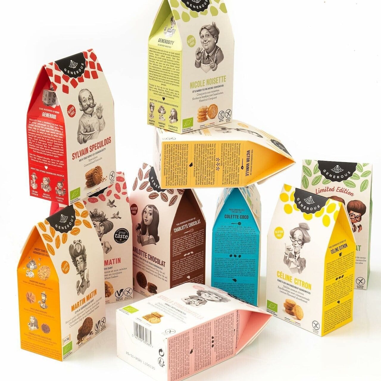 Generous(寛大さ)は、当社の製品名であり、当社の哲学であり、持続可能性の推進力であり、人材の使命です。私たちのベーカリーでは、さまざまなオーガニックグルテンフリーの手作りクッキーを提供しています。私たちは、ベルギーの最高の伝統でビスケットを焼くように努めており、無駄のないフェアトレードのサプライヤーと、実験への無限の欲求を持ってそれを行っています。