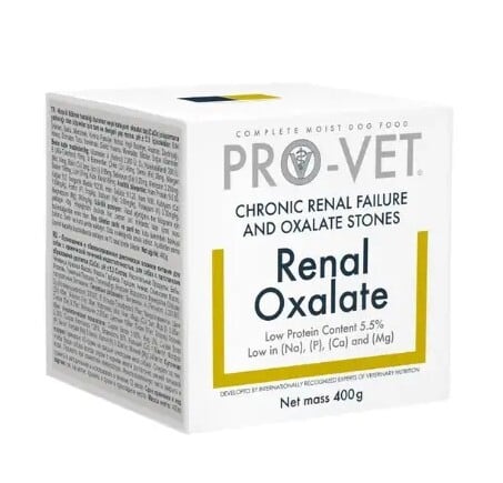 【リニューアル‼】犬・PRO-VETリーナルオキサレート・慢性腎臓病またはシュウ酸カルシウム結石/超プレミアム療法食 スチームボウル 400g