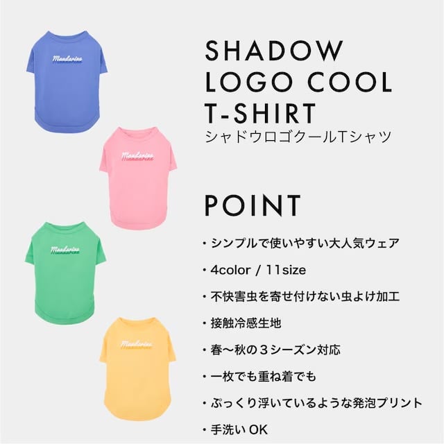 【受注販売】MANDARINE BROTHERS /マンダリンブラザーズ・SHADOW LOGO COOL T-SHIRT ・ピンク/接触冷感・防虫加工/中型犬~大型犬