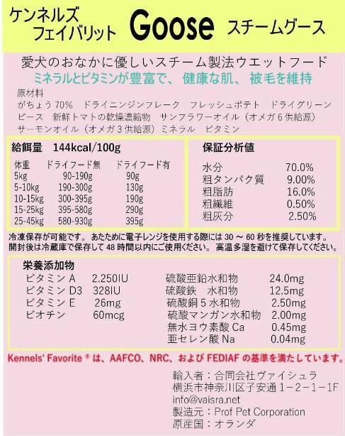 犬・100%天然成分・グース(ガチョウ)/Kennels’favouriteスチームウェットフード 395g・着色料、香料、防腐剤、大豆などは一切なし | RAIMAPHOE DOGS & CATS ORGANIC SELECT SHOP