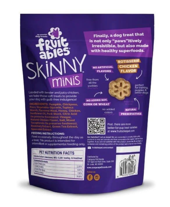 カボチャ、野菜グリセリン、ひよこ豆、エンドウ豆、タピオカ澱粉、蜂蜜、鶏肉、亜麻仁、ひまわり油、クエン酸(鮮度を保つため)
