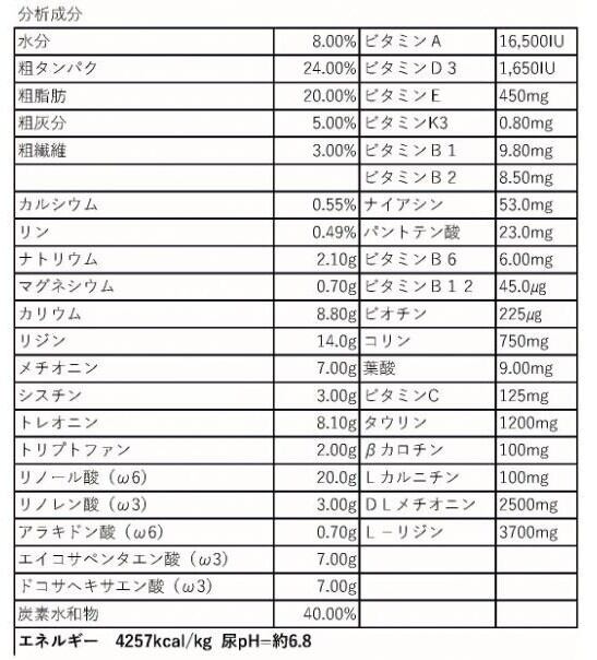 粗脂肪 20.00% ビタミンE 600 mg/kg