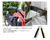ベビーカーやペットカートに直接バッグを取り付けられるマジックテープホルダーも付属しております。