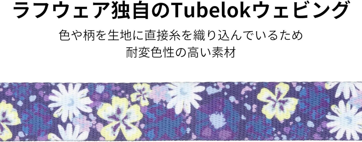 【機能/特徴】ラフウェア独自のTubelokウェビングは、色や柄を生地にプリントするのではなく、ジャカード織りで生地に直接を糸を織り込んでいるため耐変色性の高い素材です。