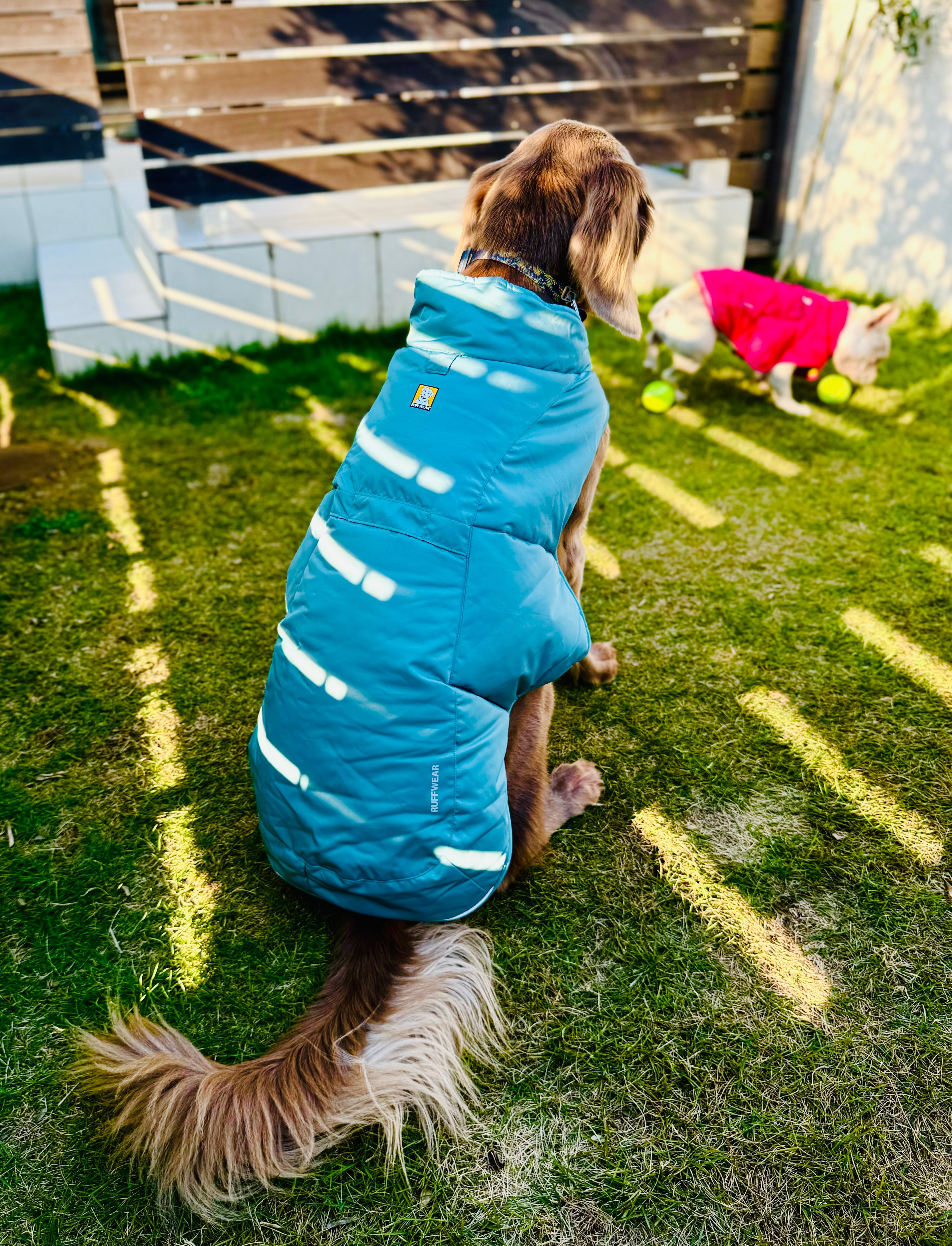 【機能/特徴】保温性の高い、愛犬のための冬用断熱ジャケットです。折りたたんでコンパクトにまとめられるパッカブルなスタッフサック一体型のデザインで、持ち運びに便利です。